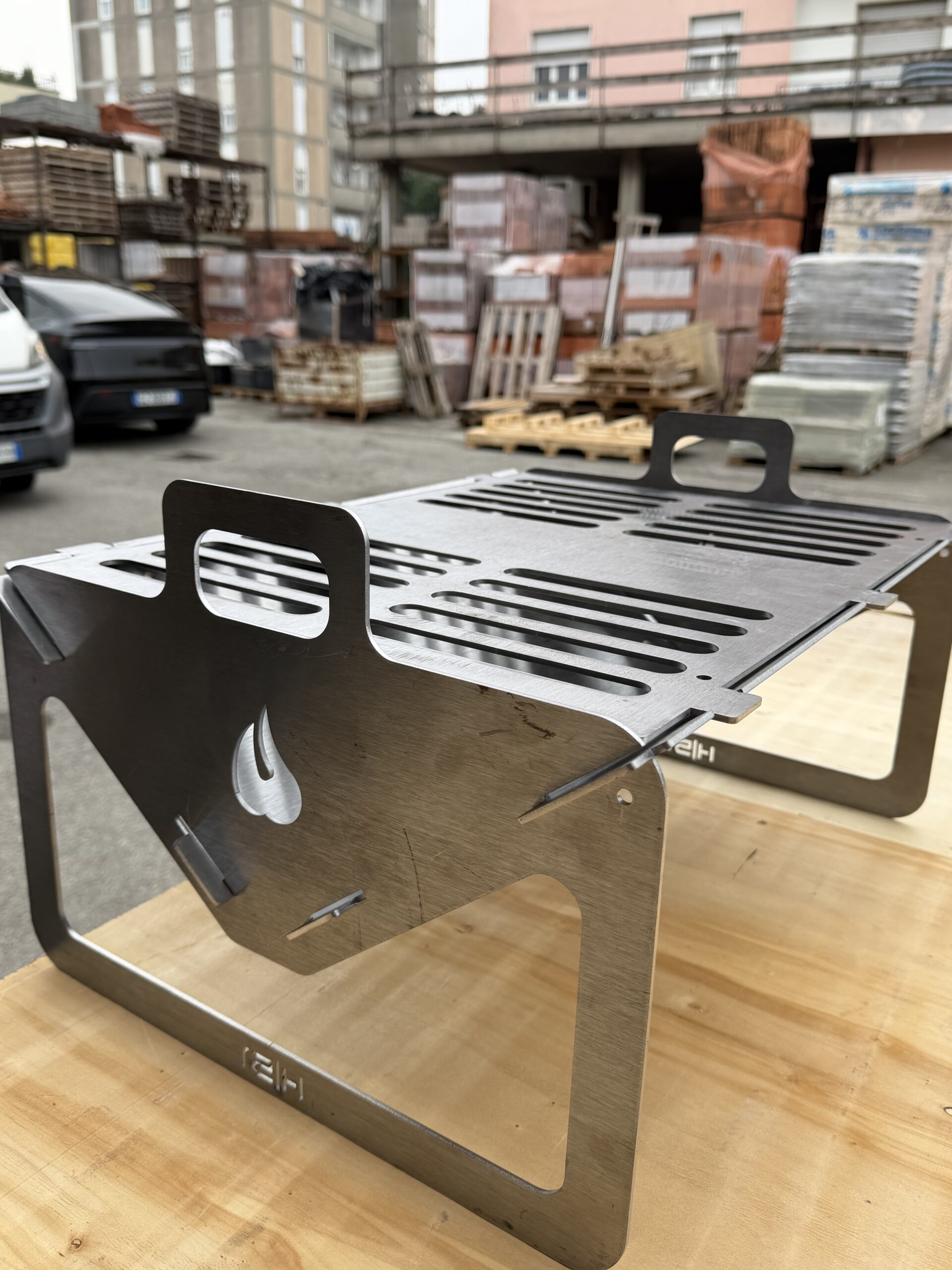 Realizzato interamente in acciaio di alta qualità, è smontabile e portatile, si chiude come una valigia e puoi portarlo ovunque: in montagna, al lago o nel tuo giardino.