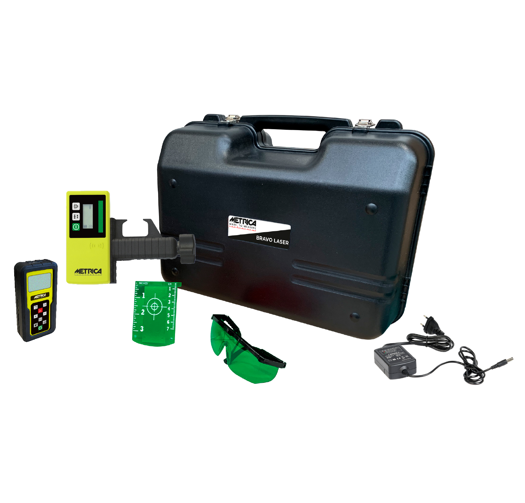 – Laser verde autolivellante rotativo orizzontale con piombo, scanner, inclinazione assi X ed Y manuale e calotta in metallo