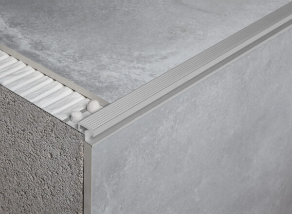Profilo per finitura di gradini, fabbricato in alluminio, ideato per proteggere e decorare scale rivestite con ceramica . Il design del suo incasso consente l’installazione di qualsiasi striscia LED scelta dall’installatore senza l’utilizzo di diffusori, conferendo al profilo un maggiore carico decorativo.